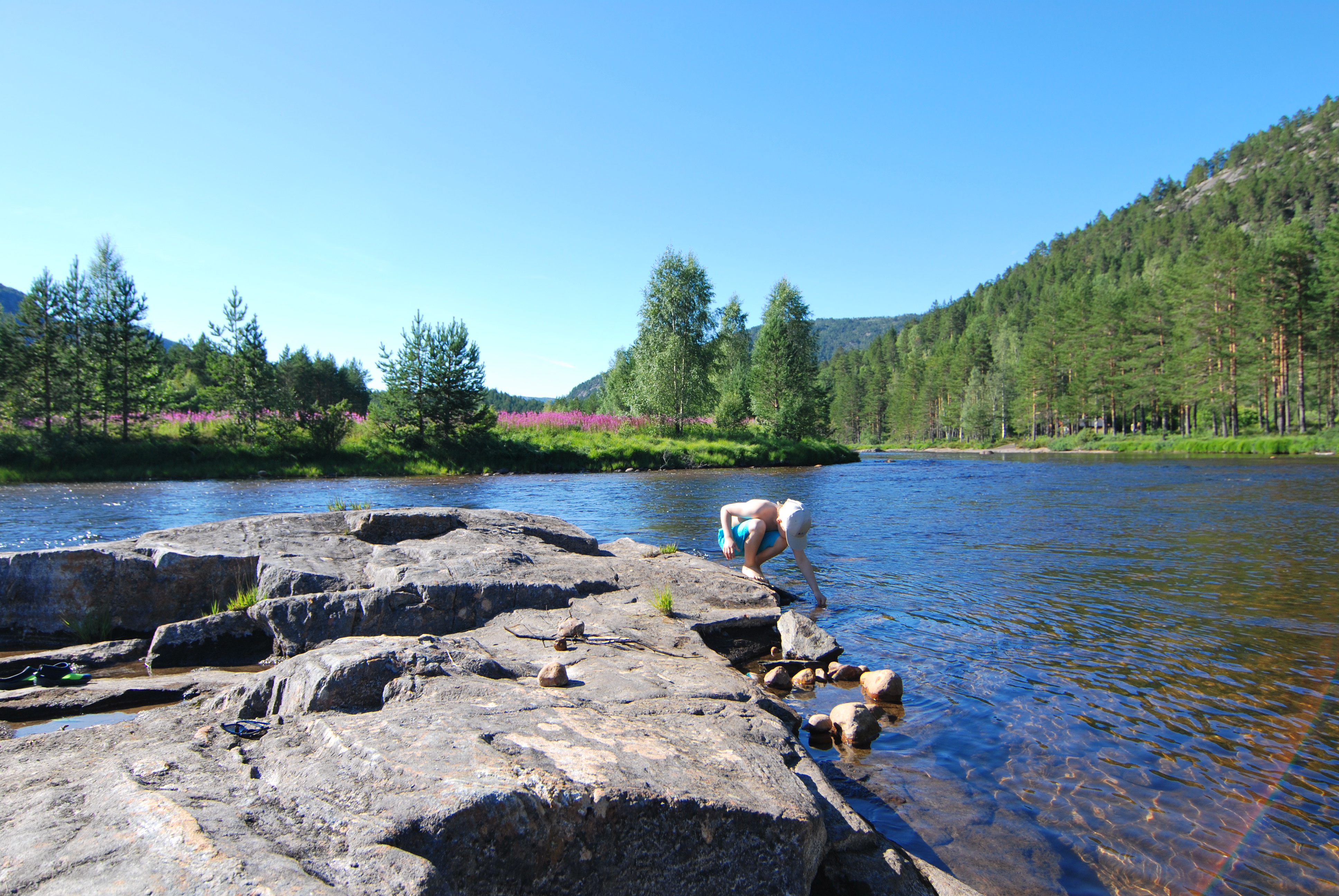wir haben viel unternommen, waren jeden Tag unterwegs, sind steile, kaum erkennbare Pfade gegangen und haben soviel von der beeindruckenden Natur entdeckt. Unser jetzt schon so großer Junge liebt es auch zu Wandern, so waren wir täglich mit klickenden Stöcken unterwegs, jeder hat sich einen Wanderstock geschnitzt, den wir auch wirklich brauchten. Blaubeeren wuchsen überall in Massen, ich hatte keine Vorstellung von solchen Mengen an Blaubeeren, so gab es regelmäßig Pfannkuchen, Marmelade, mal Muffins oder wir haben einfach zwischendurch beim Laufen in die Büsche gegriffen, herrlich 🙂