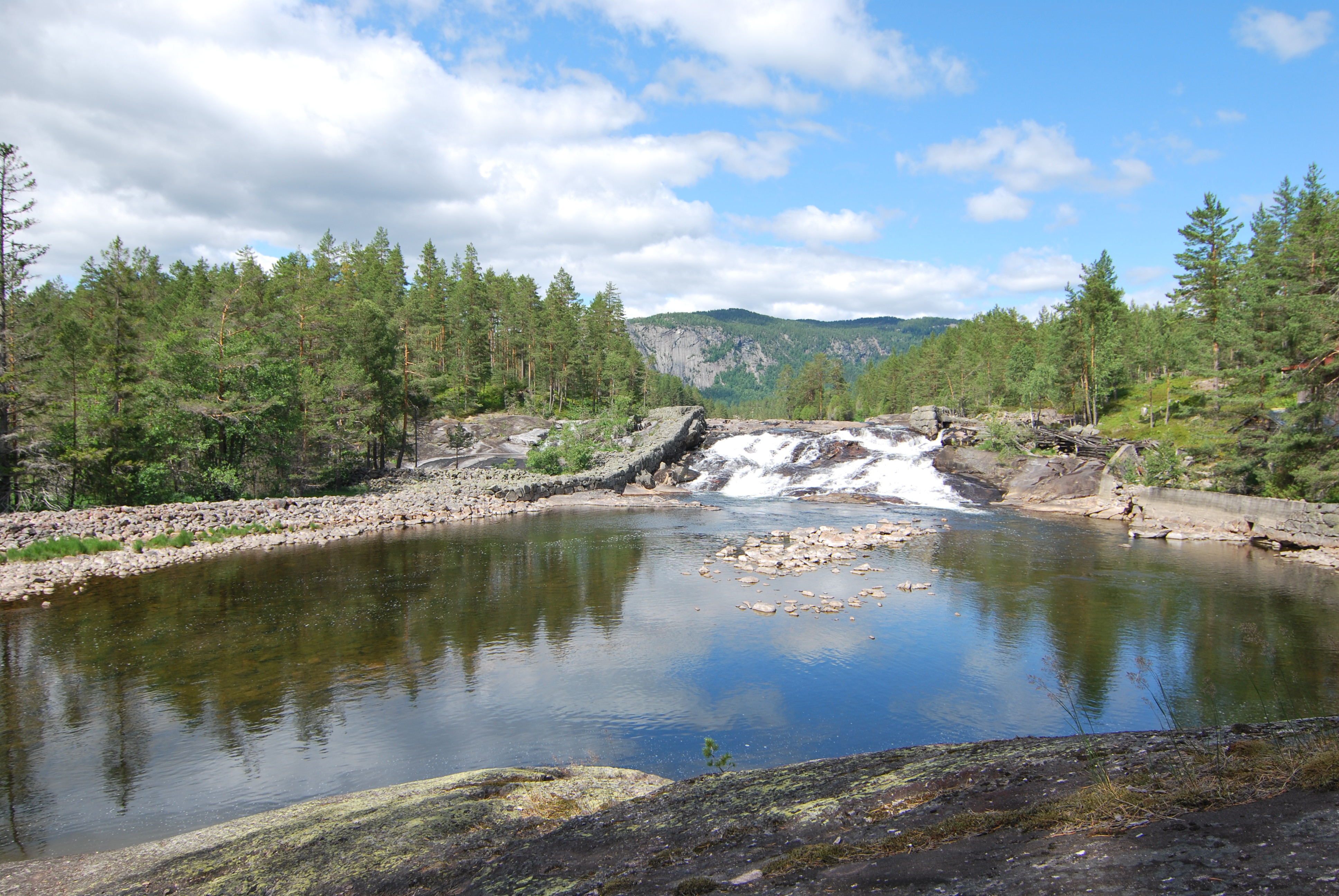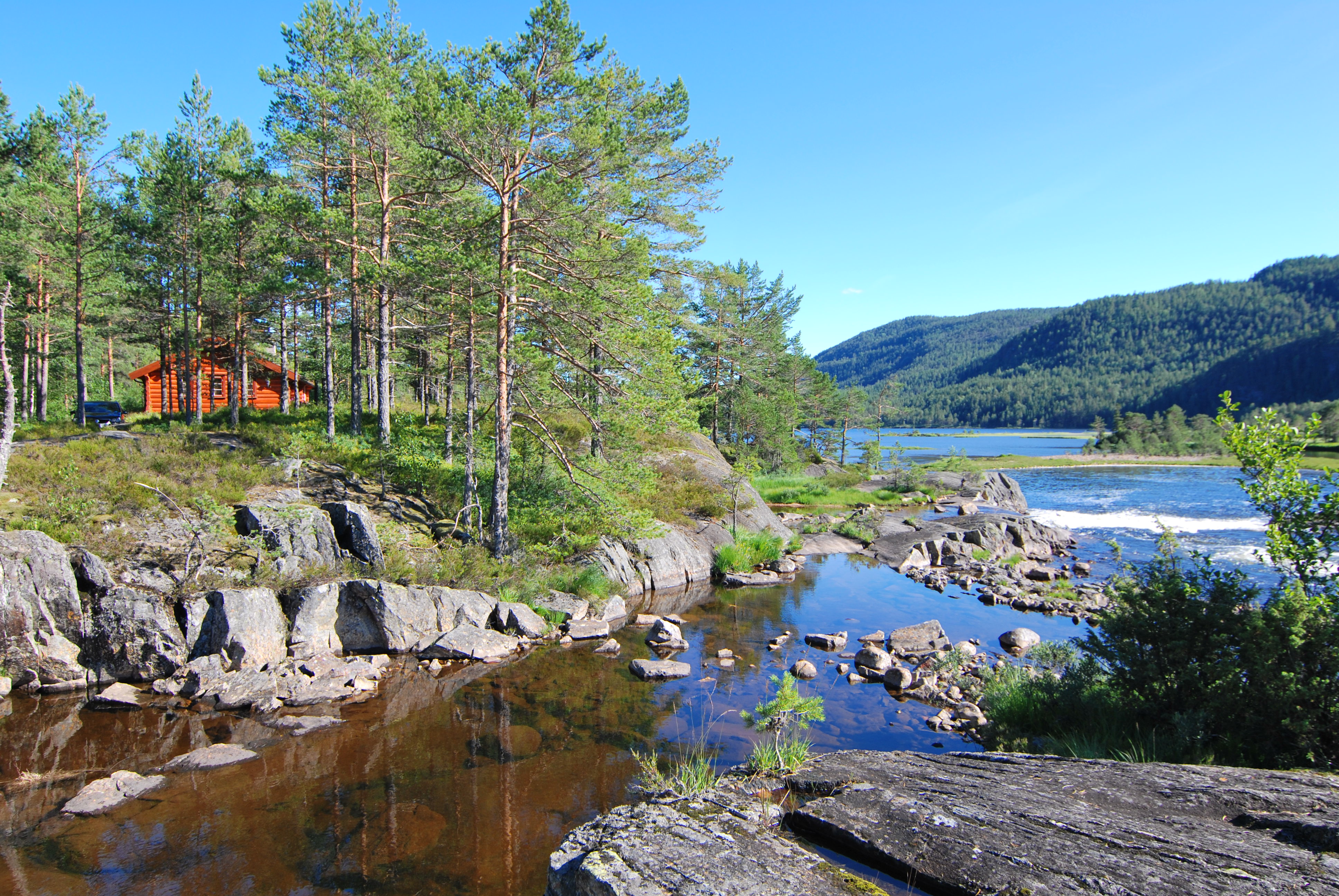unsere Hütte war tatsächlich in Alleinlage direkt an einem Wasserfall inmitten von Nadelbäumen, Birken, Heidekraut und natürlich Blaubeeren!!