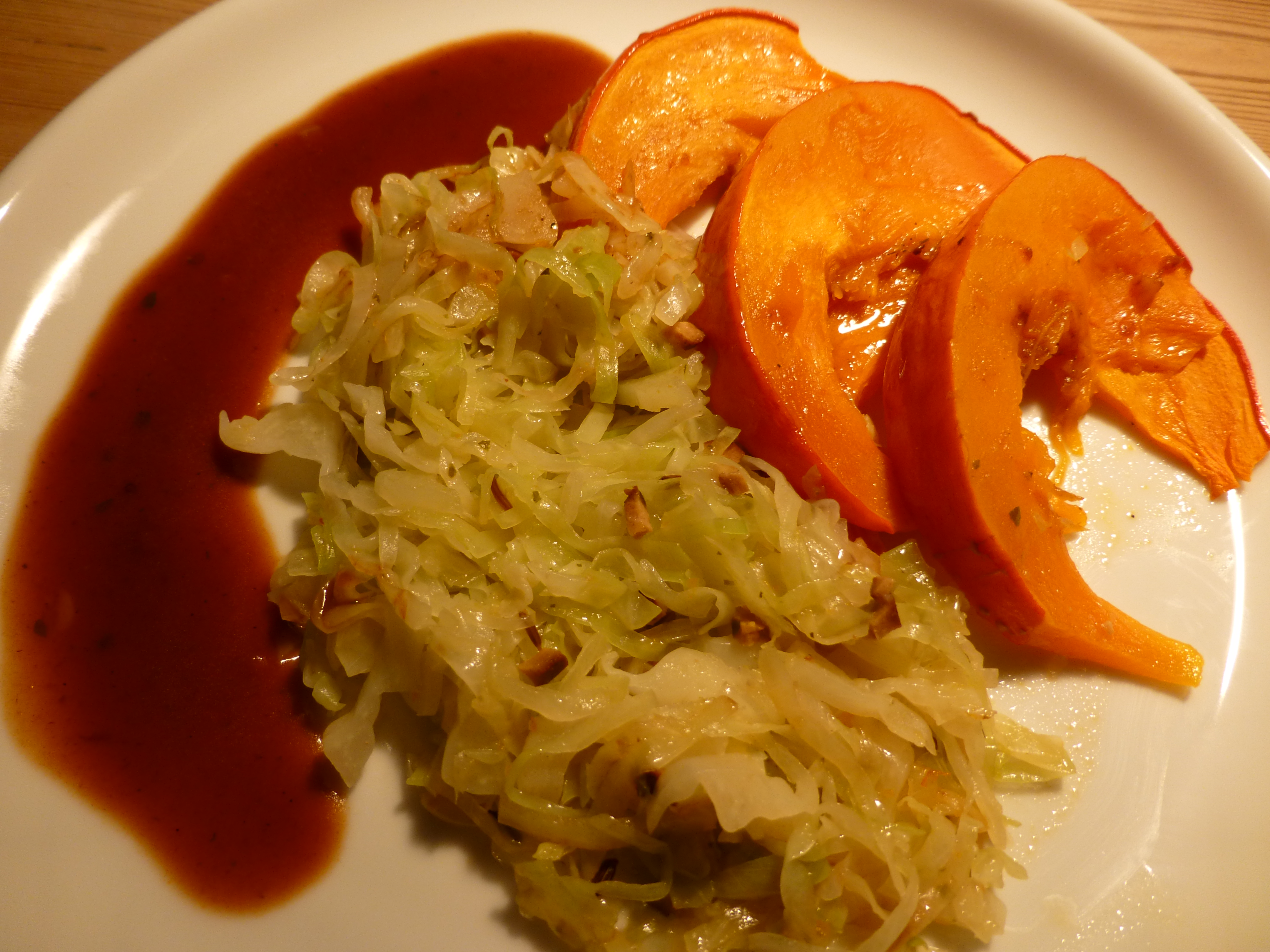 Herbstgerichte: Kohl & Kürbis mit Rotweinsauce vegan