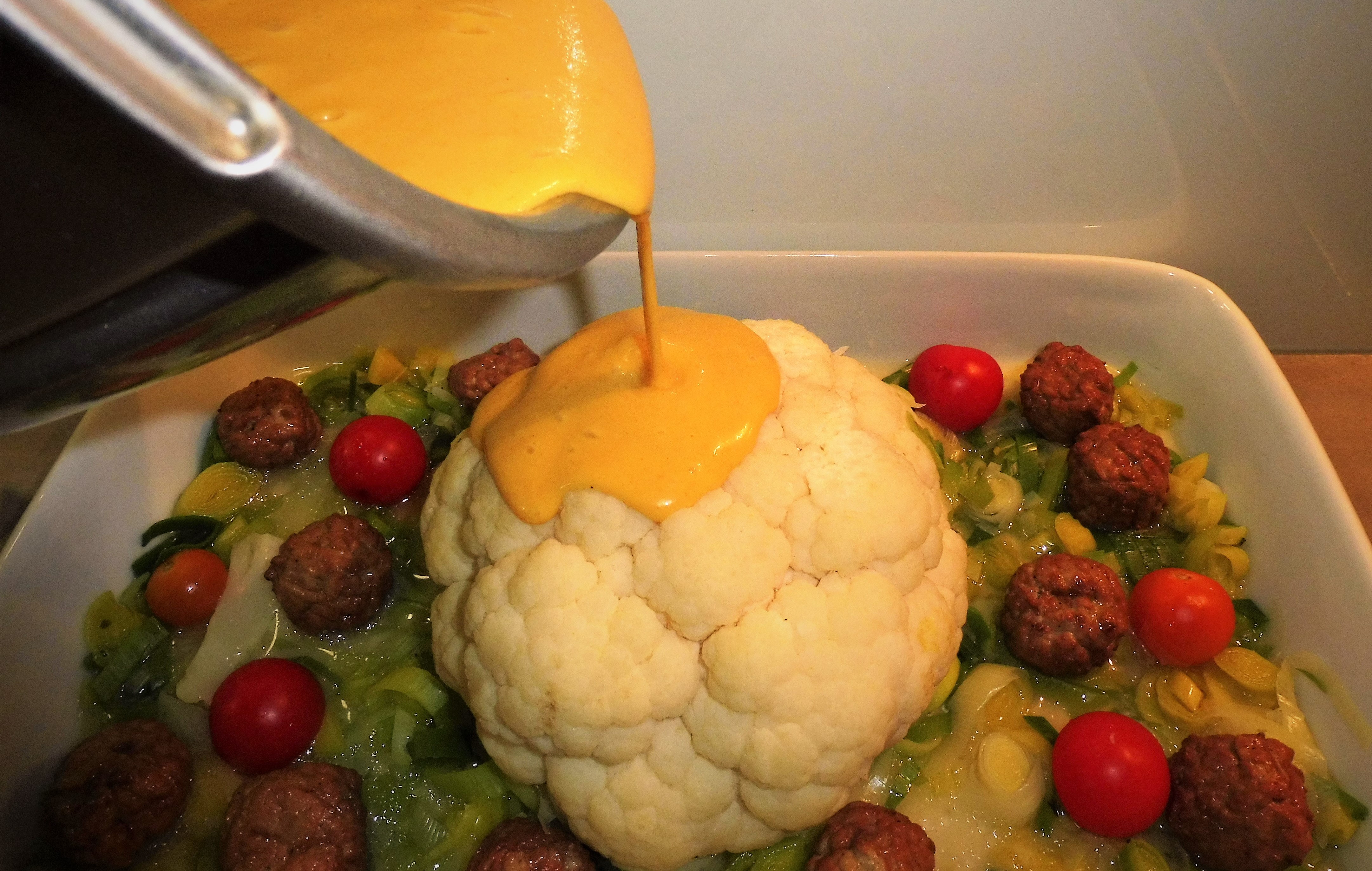 Überbackenen Blumenkohl mit Linsenreis