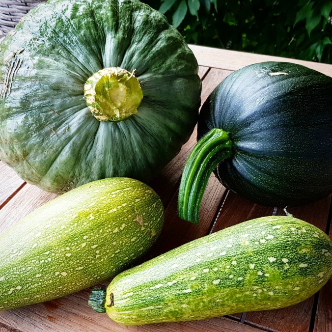 die ersten Kürbisse habe ich bereits geerntet. Leider sind es dieses Jahr nicht nicht so viele aber die Größe passt. Und ein Kürbisbeet ist ja auch immer mit recht wenig Zeitaufwand verbunden…