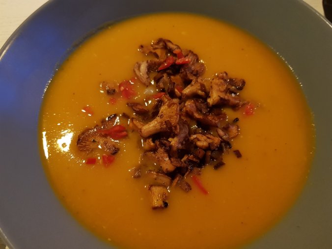 Aus den Kürbisfleischresten habe ich übrigens mit Möhre und Kartoffel eine leckere Suppe gekocht.