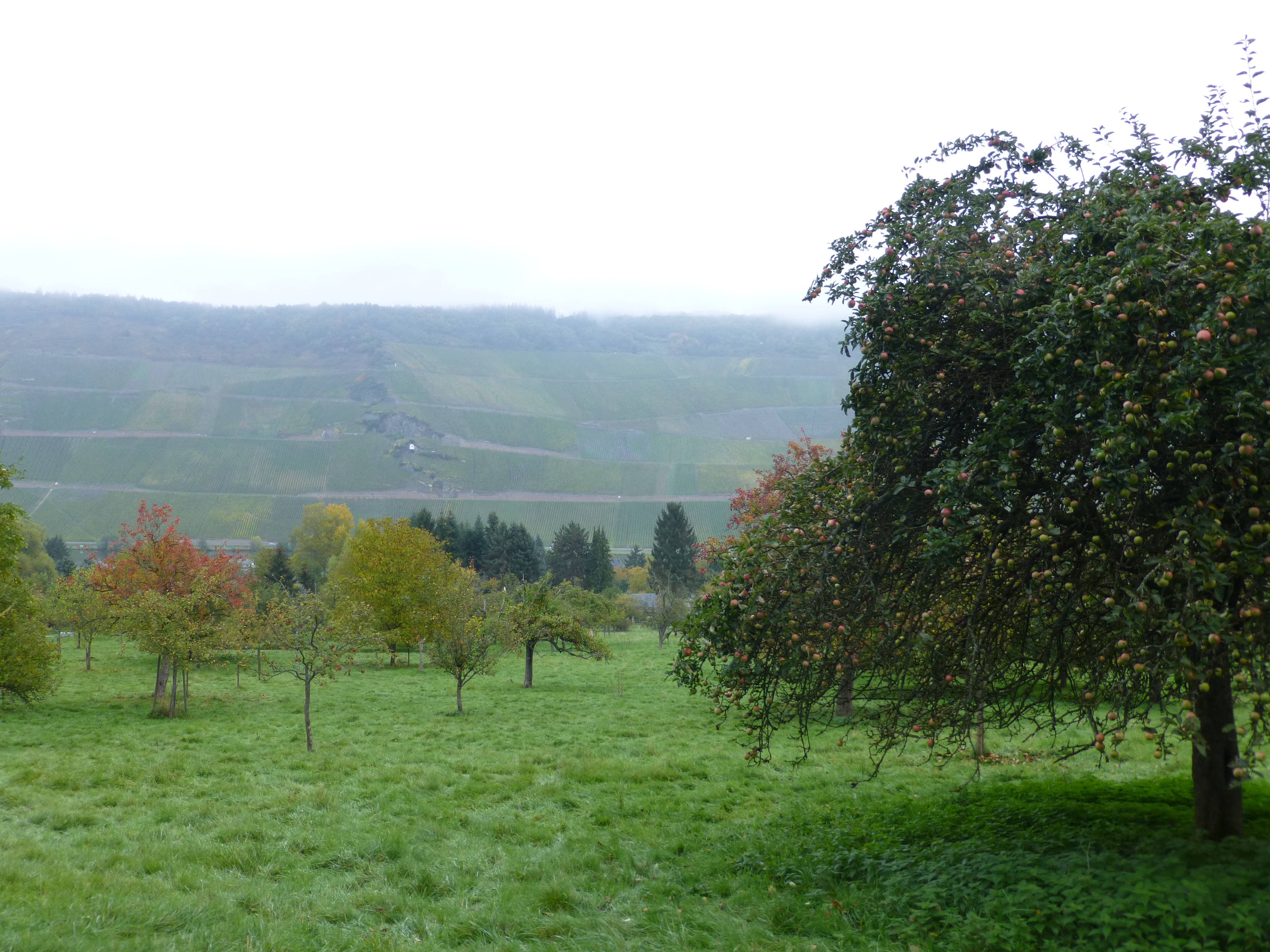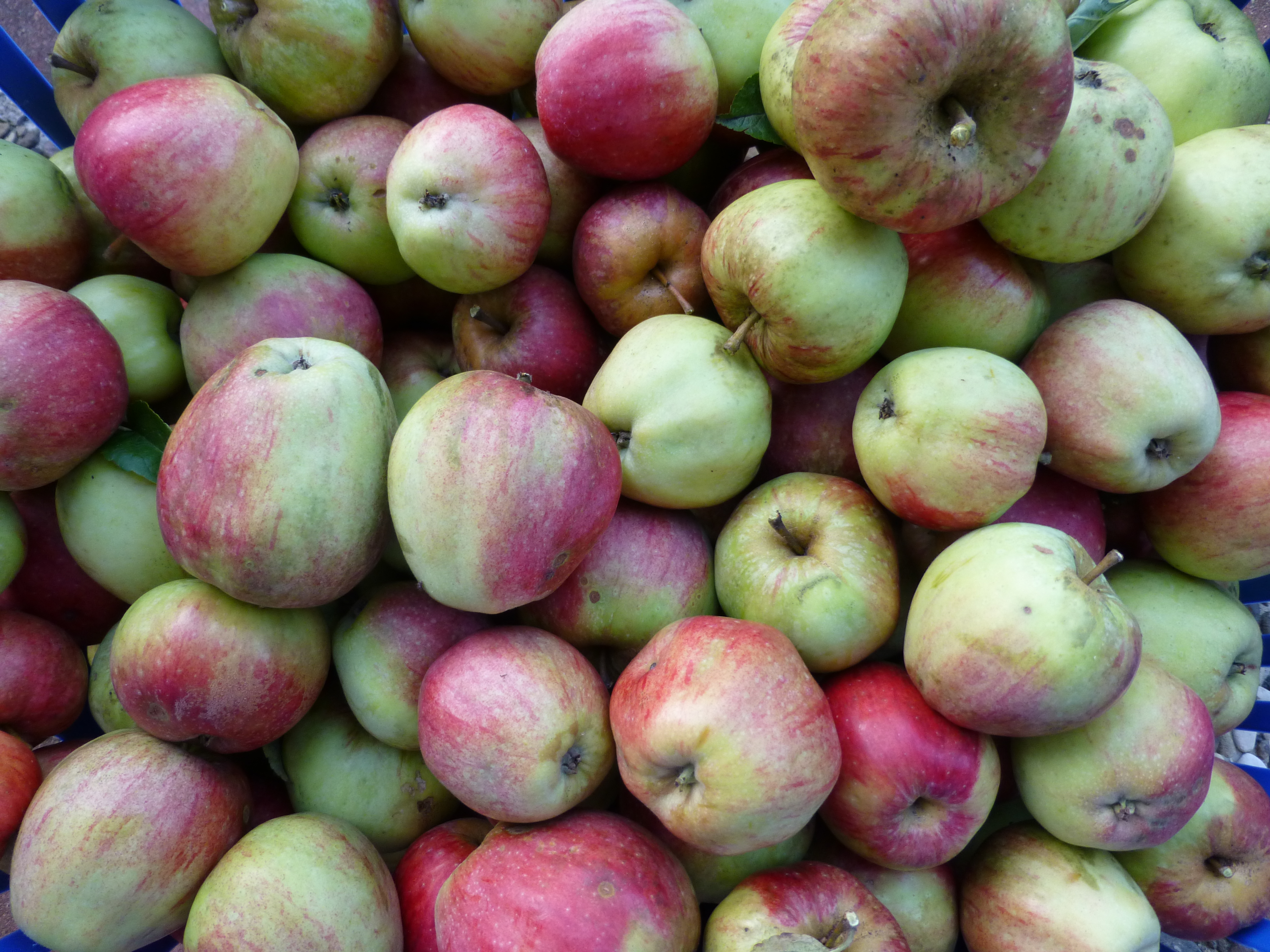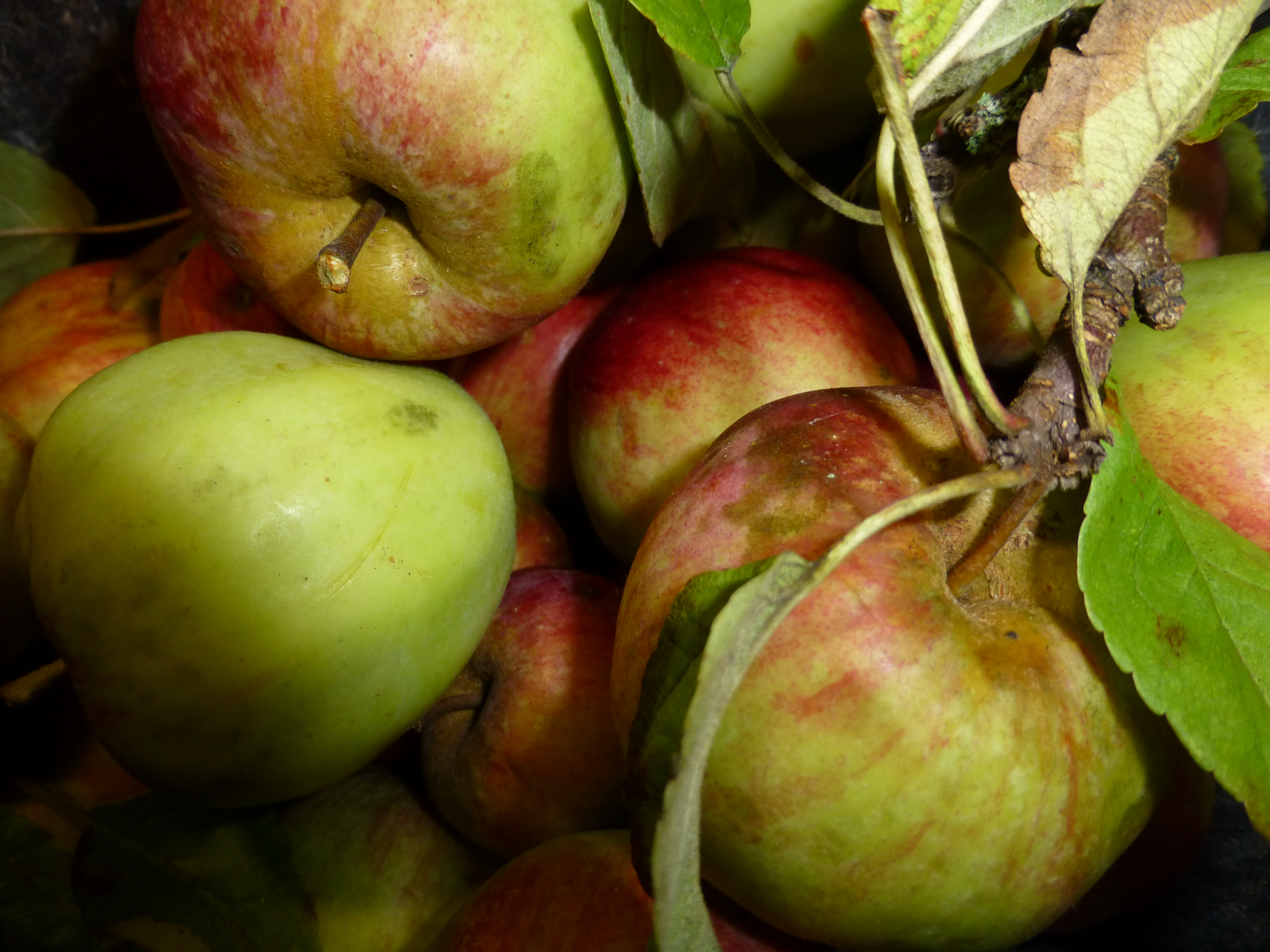Wir haben einen Apfelbaum im Garten, der sehr spät die Früchte reifen lässt. Meist gibt es um diese Zeit schon die ersten Fröste, dann werden die Früchte glasig. Dieses Jahr ist es noch so mild, dass wir ordentlich ernten können.