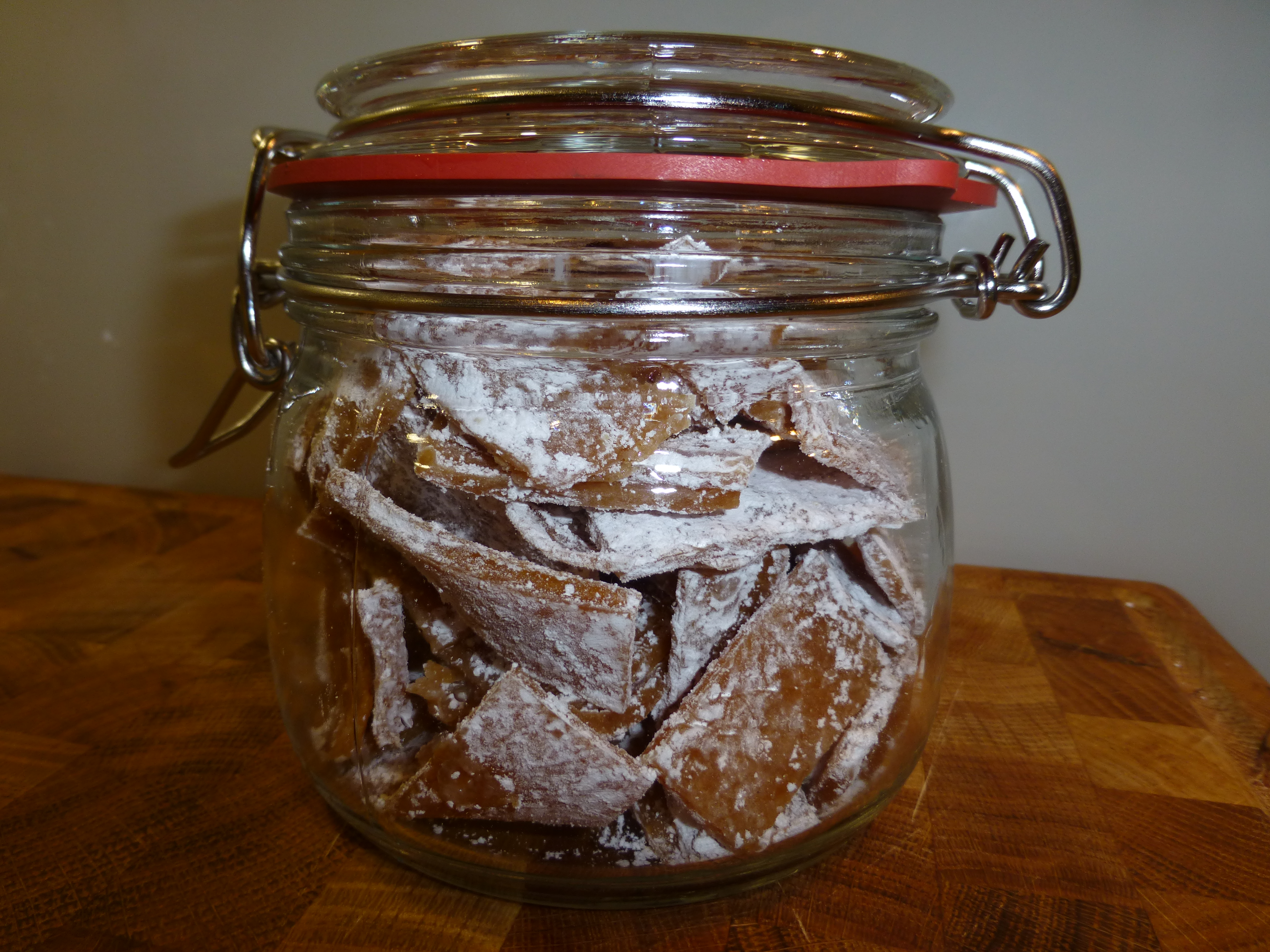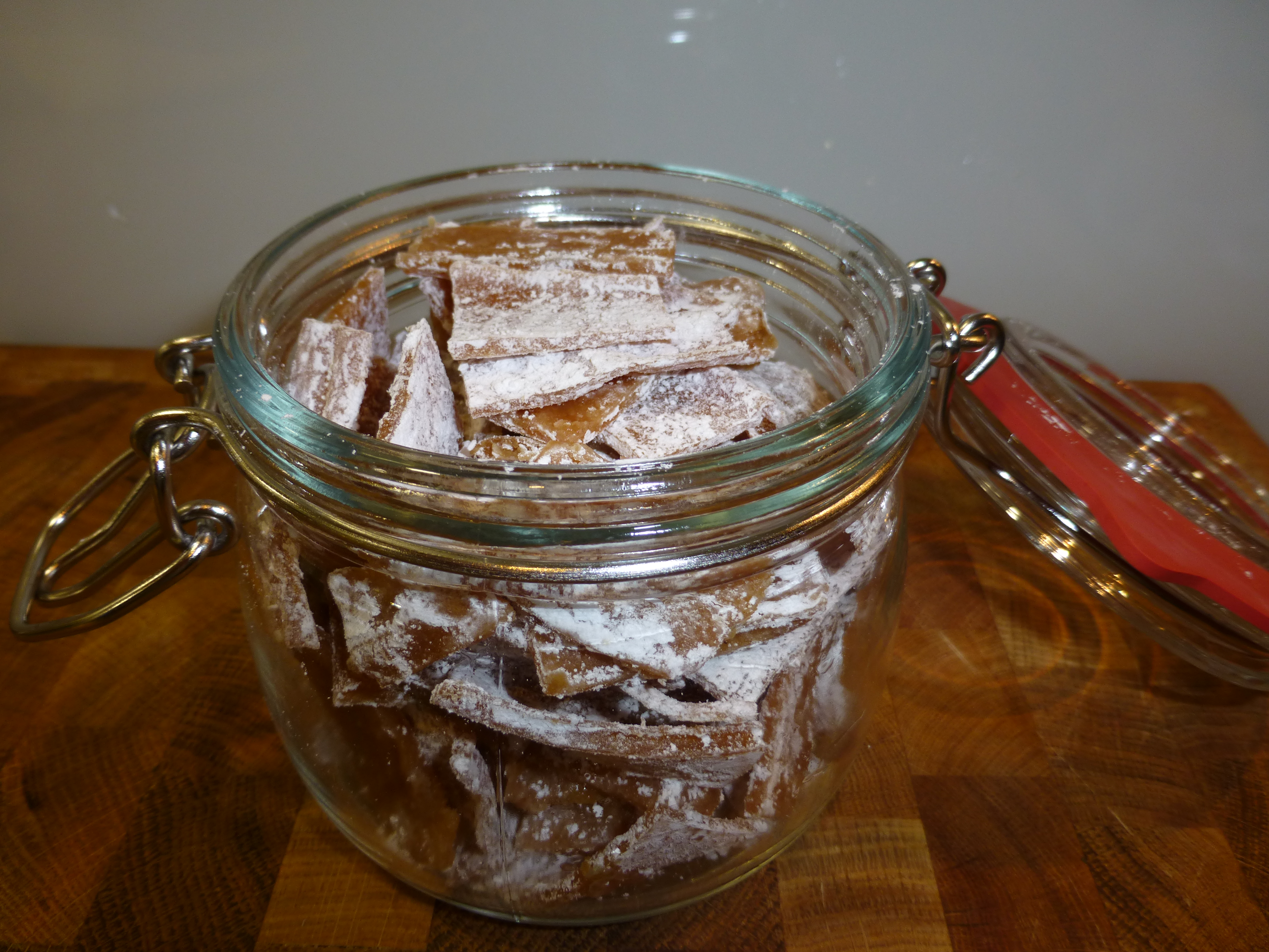 - die Menge (das war bei mir ca. 630 g) habe ich mit ca. 350 g Rohzucker & 2 TL Agar Agar noch einmal aufgekocht,