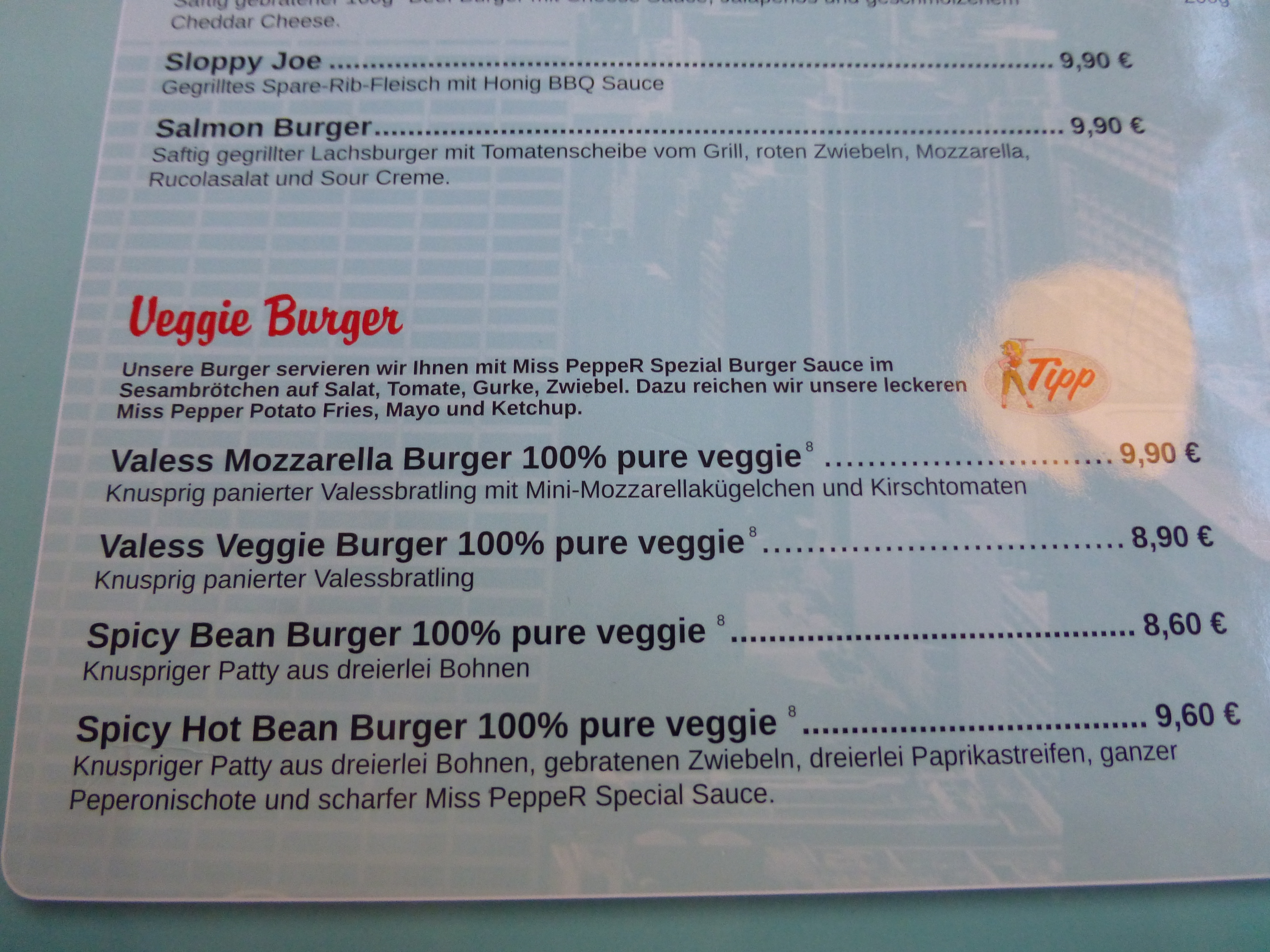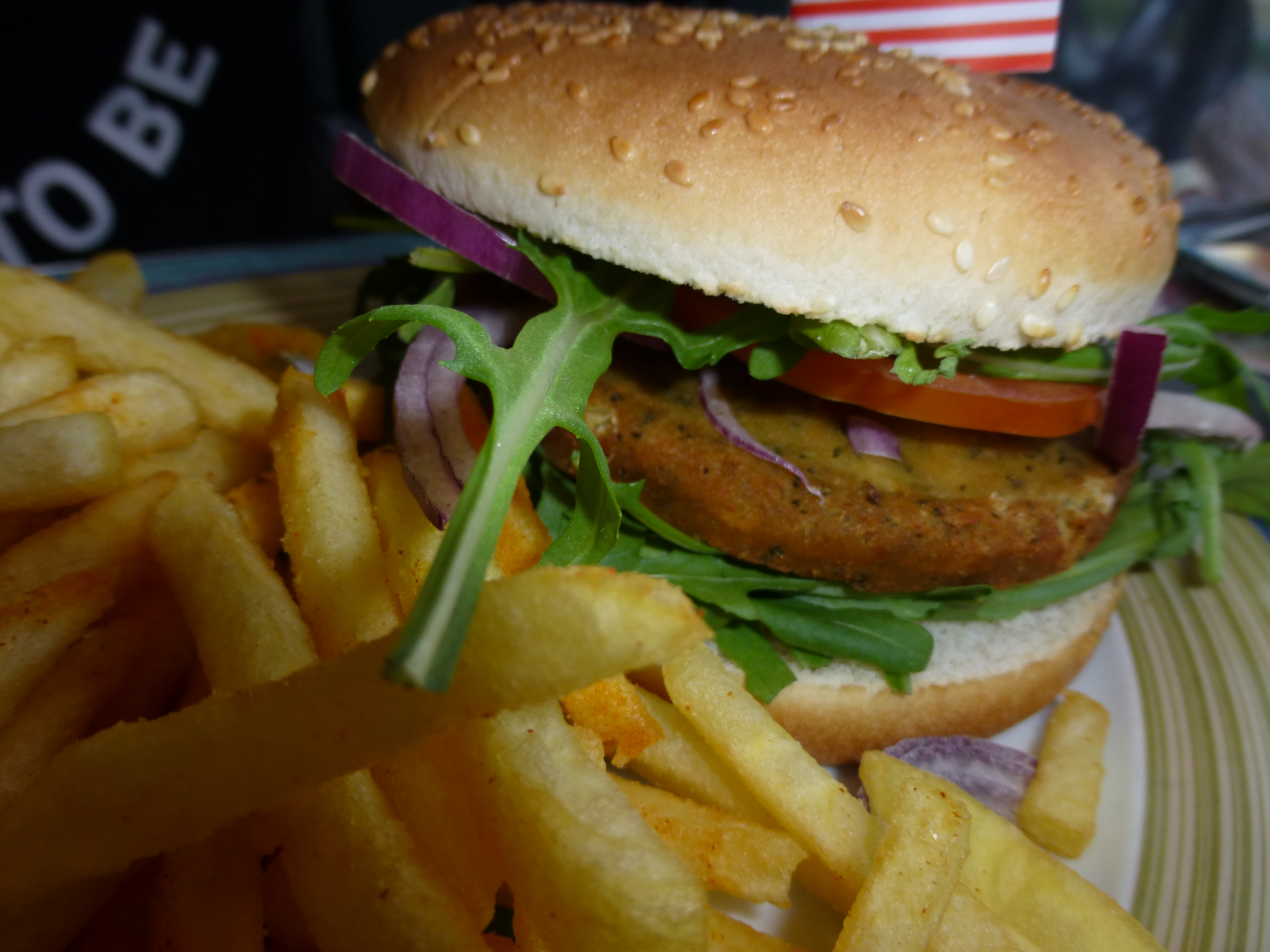 Wie haben wir uns gefreut, als wir auf der Karte vegane und vegetarische Burger entdeckten (schienen übrigens beide vegan zu sein). Also haben wir beide Burger bestellt.