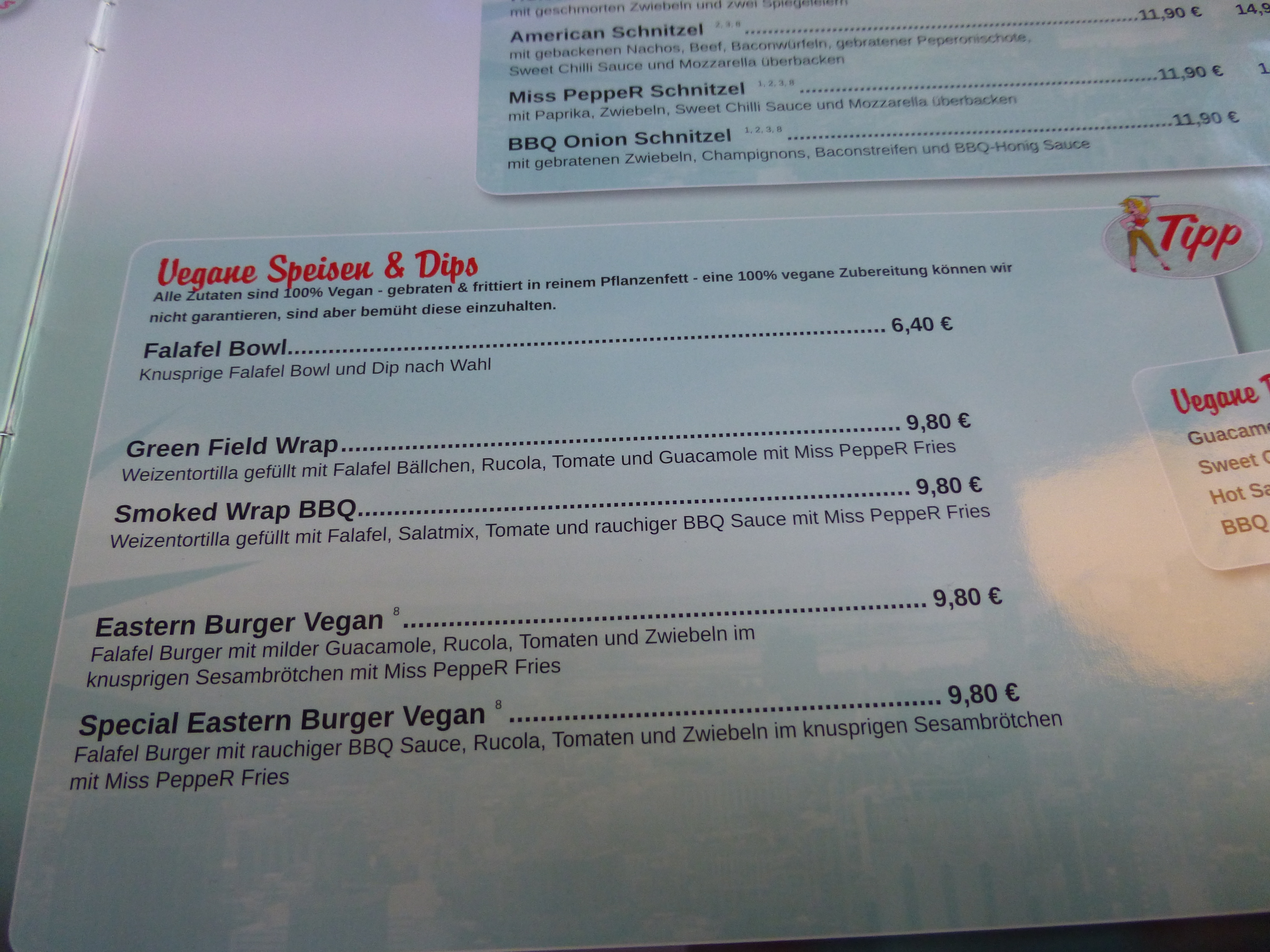 Also haben wir uns die Pommes geteilt. Sehr freundlich war aber die Servicekraft, sie hat uns die Essen nicht berechnen wollen, nicht einmal die Pommes: „…nein, das ist schon in Ordnung, Ihr seid auch nicht die Ersten, es gab schon öfter Beschwerden wegen der Burger. Wir haben neue Servicekräfte zur Aushilfe, die sind leider noch nicht so gut eingearbeitet und wissen nicht, dass die Majo nicht zum Veganen Burger gehört…! Sie war sehr bemüht und hat sich noch einmal entschuldigt. Leider werden in solchen Ketten die Produkte nicht mal eben von der Karte genommen.