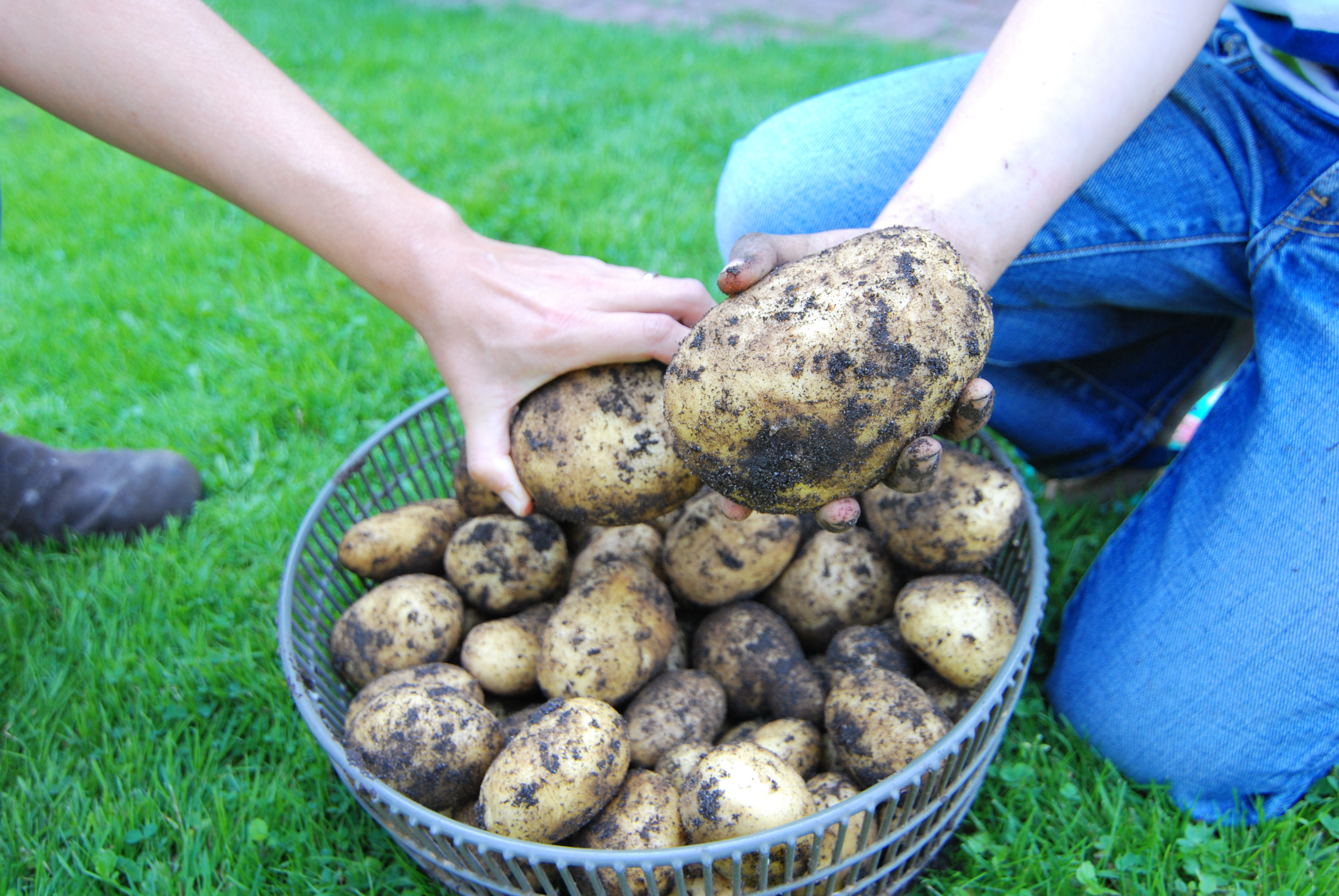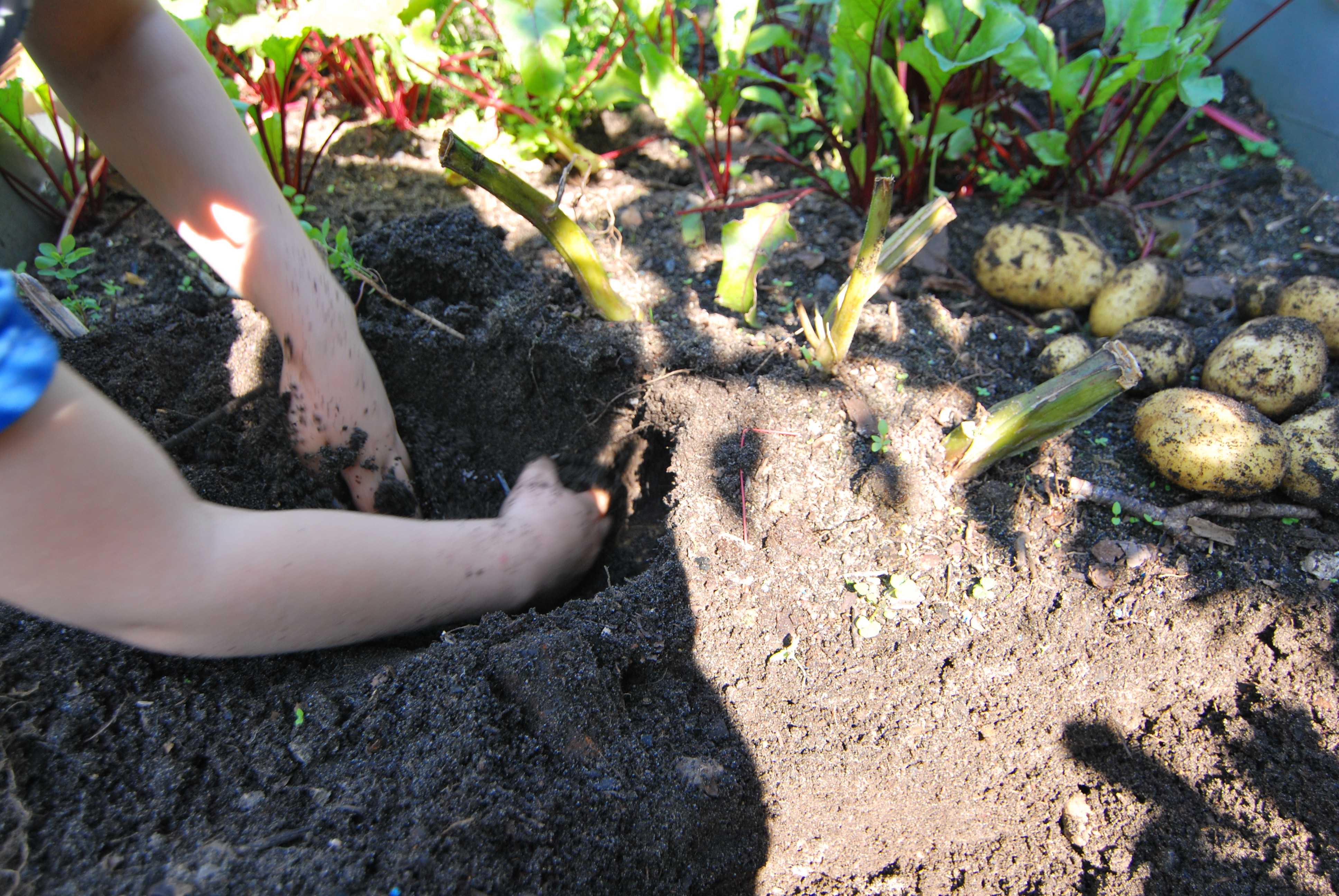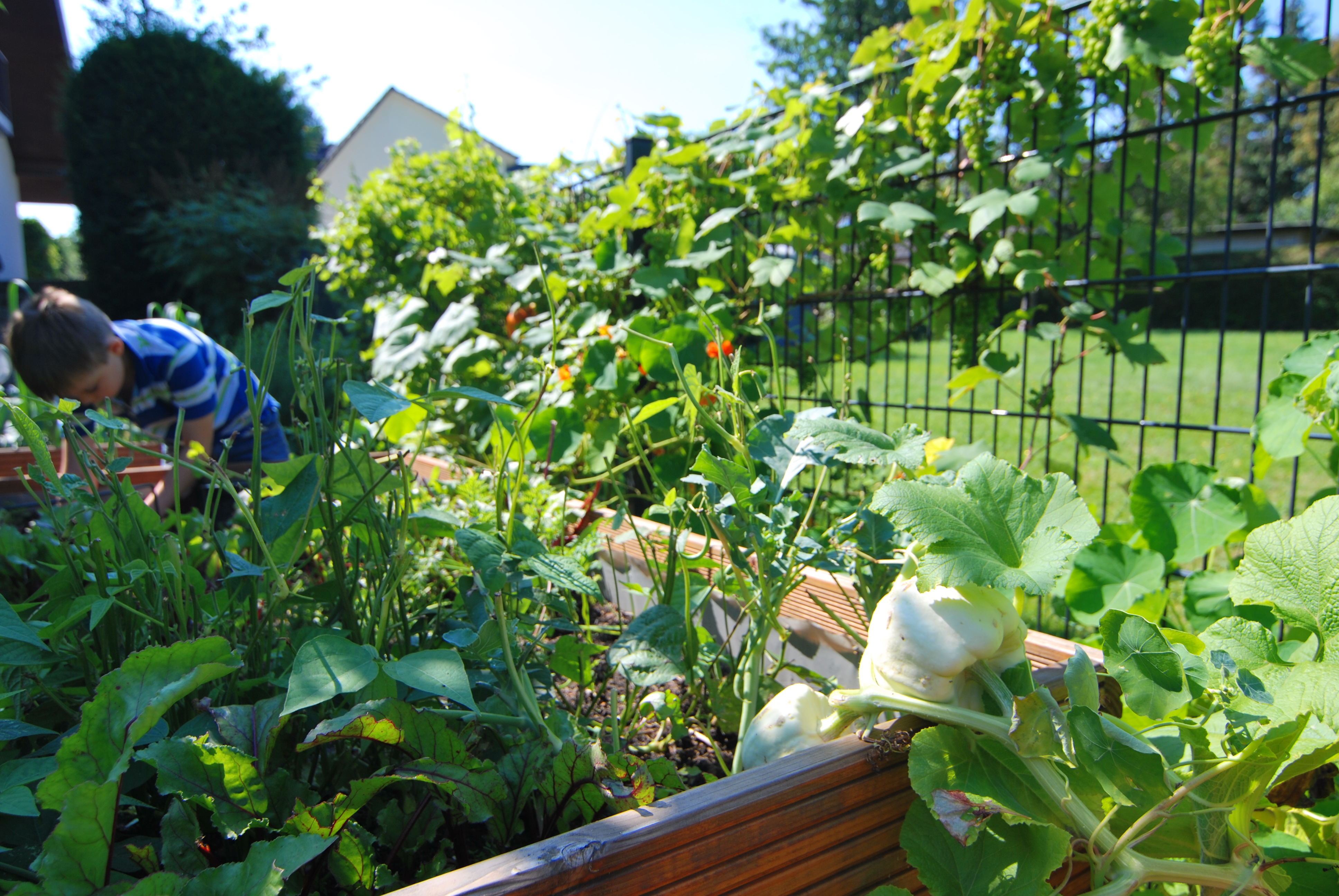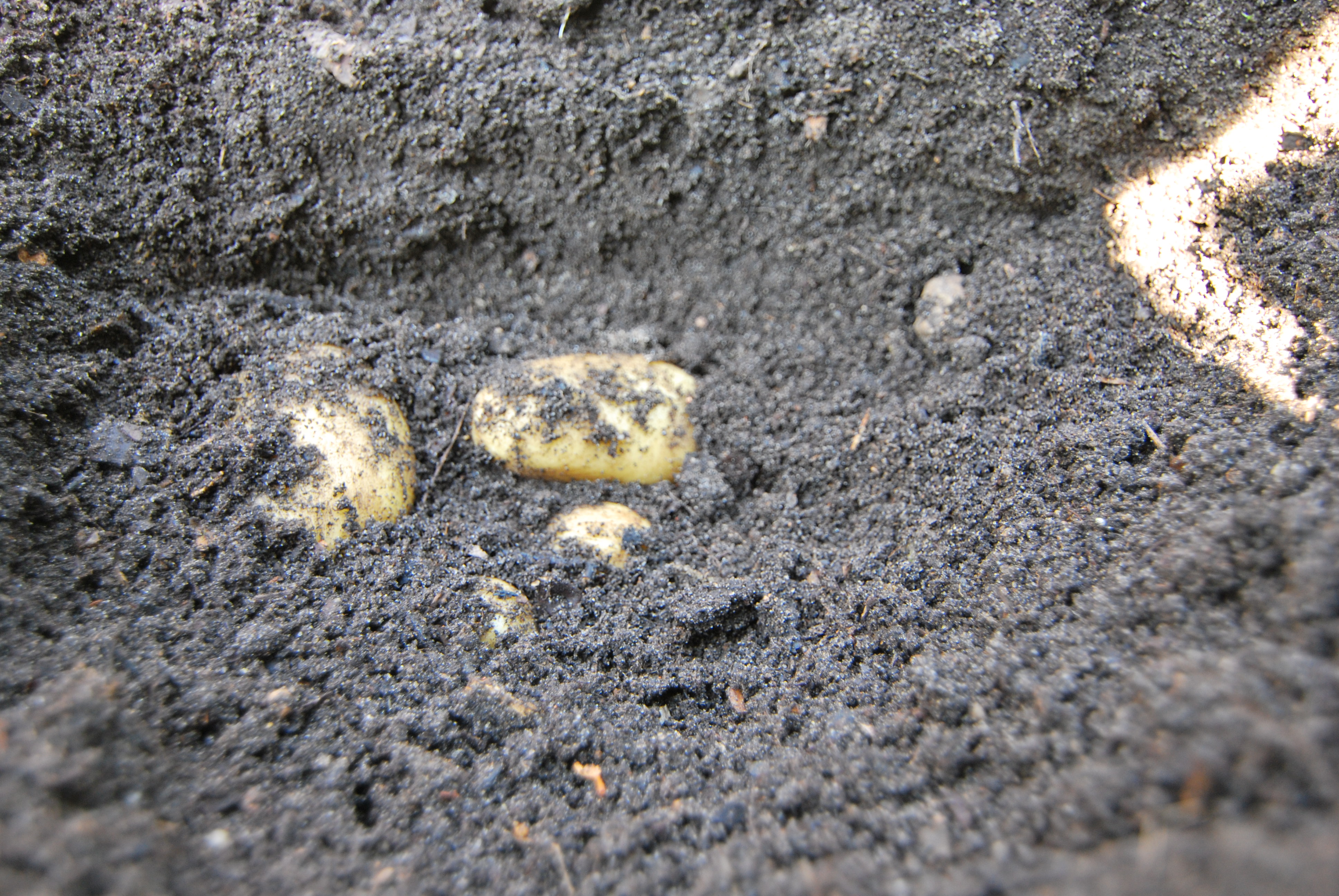 Ich denke, ich habe die Challenge gewonnen! Heute habe wir es gewagt und die Kartoffeln geerntet. Nachdem das Kraut so wahnsinnig im Hochbeet wuchs (mehr als einen Meter), dachte ich schon, „….na, dann werden die Kartoffeln vielleicht gar nicht richtig wachsen…“ Habe es vor 3 Wochen abgeschnitten, weil es der roten Beete und den Möhren das Licht nahm. Ich war schon so enttäuscht, da ich davon ausging, nur das Kraut sei so geschossen, doch weit gefehlt: Aus 9 gekeimten Biokartoffeln habe ich doch schon eine gute Ernte erzielen können. Mit dieser Größe (ca. 6 handgroße waren dabei) habe ich nun wirklich nicht gerechnet. Die Hochbeete sind einfach eine gute Sache 🙂